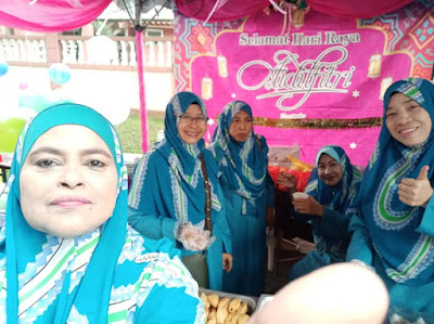 HELWA dengan unifom baru sedondon menjaga gerai kuih muih.